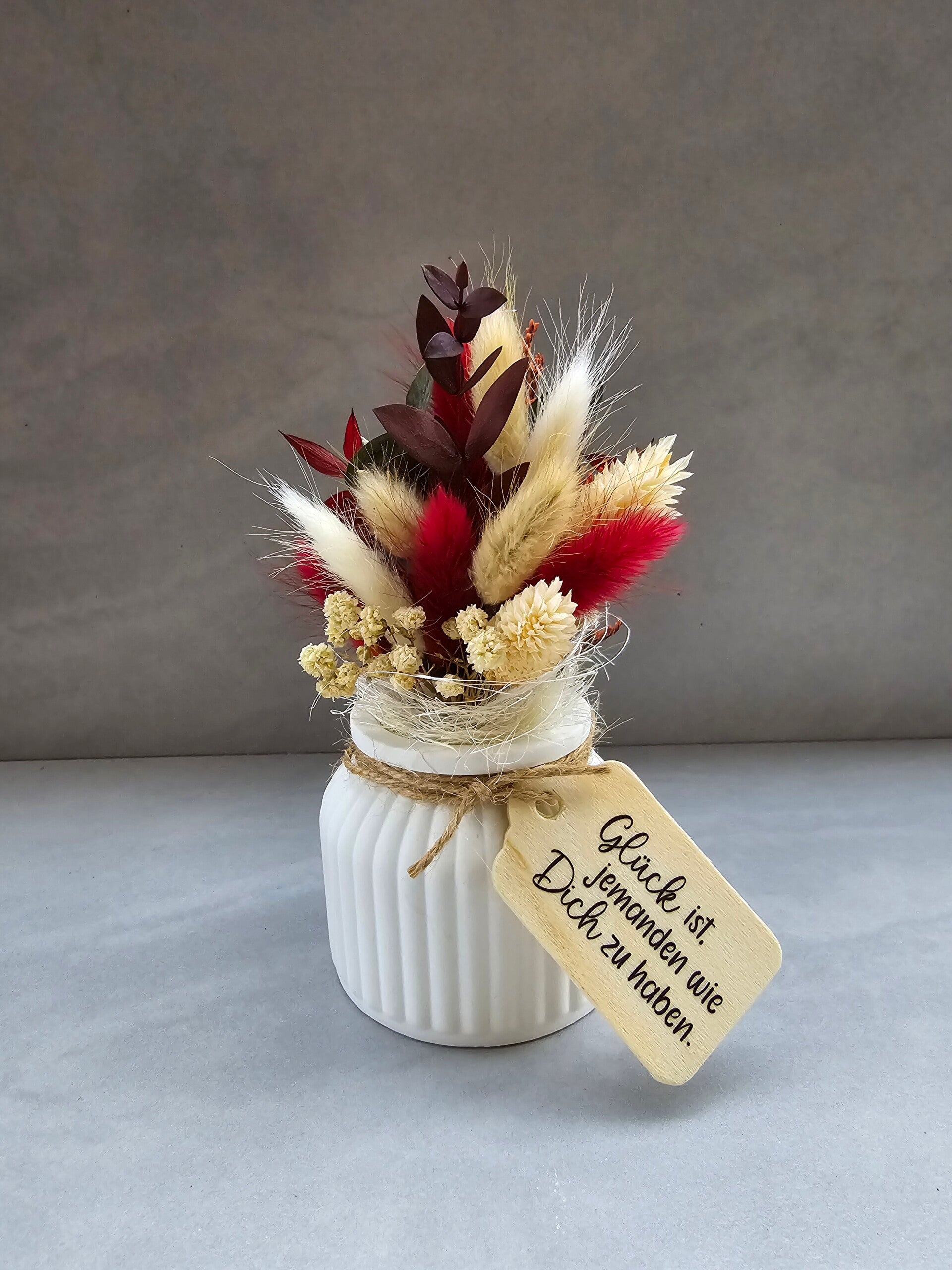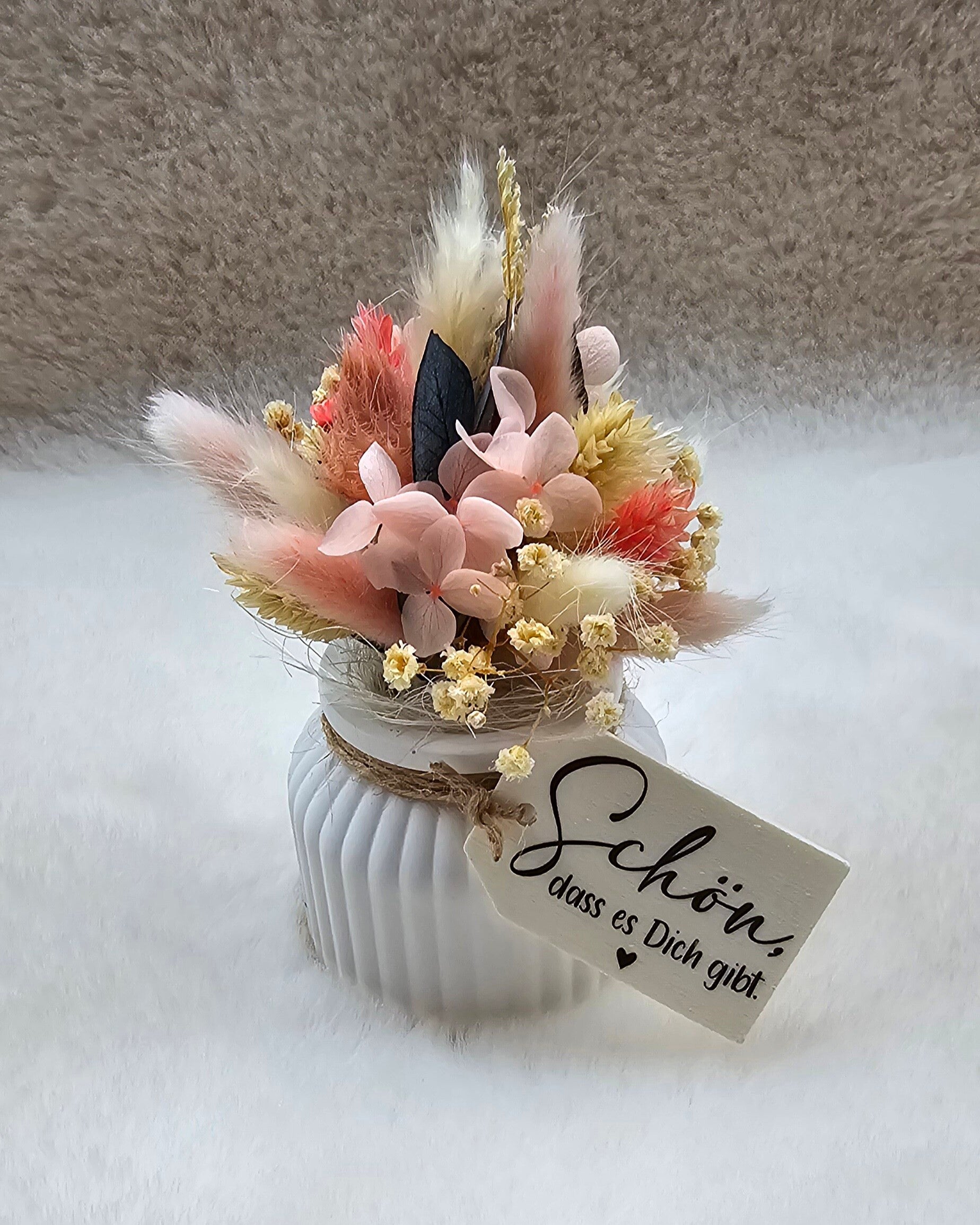 Gießform Vase mit Trockenblumen und Anhänger mit Spruch, in verschiedenen Farben erhältlich